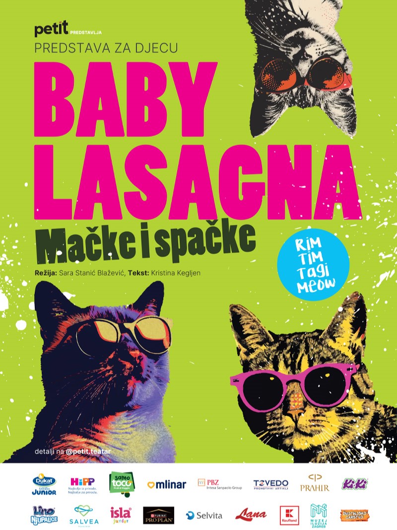 Novost ovogodišnjeg festivalskog programa su i dvije dječje predstave. Osim organizirane predstave za vrtiće i škole, porečkim mališanima za posjet s roditeljima nudi se predstava Baby Lasagna – mačke i spačke u produkciji Petit teatra. Interaktivna priča iz perspektive triju Markovih mačaka – Stipe, Branke i Gertrude, koje ga različitim spačkama nastoje spriječiti da ode trbuhom za kruhom i motiviraju da ostvari svoju pjevačku karijeru, rasplesat će prisutne u nedjelju, 23. ožujka u 17 sati.