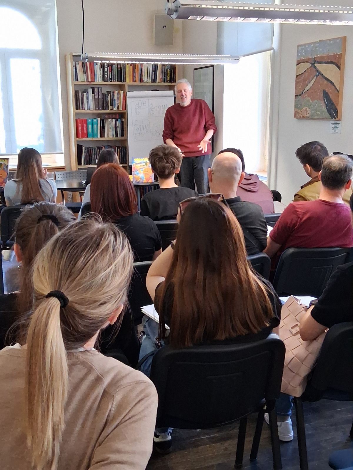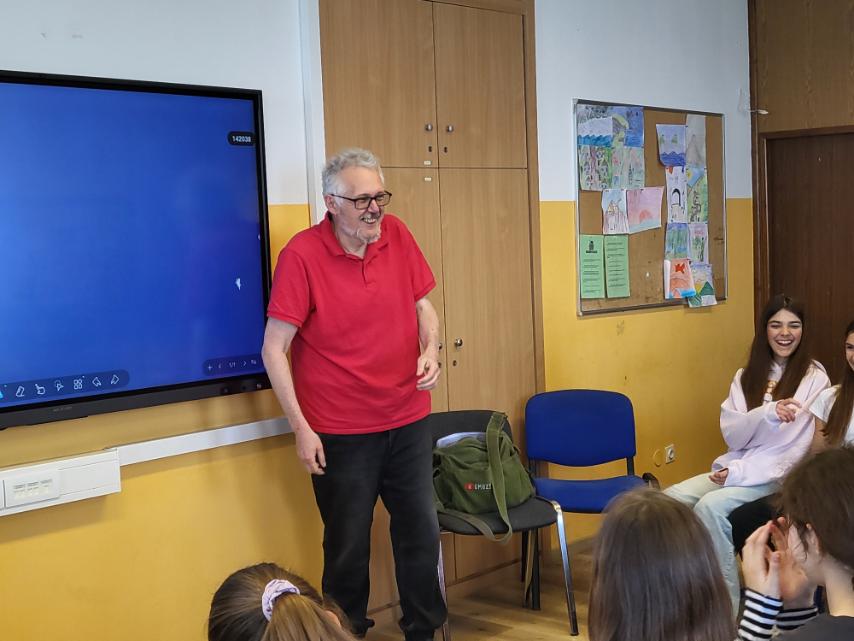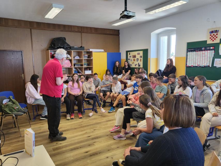 Gradska knjižnica Poreč imala je veliku čast ugostiti jedno od najznačajnijih imena domaćeg stripa – fantastičnog Darka Macana. Njegovo prvo druženje s Porečanima započelo je u petak, 24. travnja 2026., u Talijanskoj osnovnoj školi „Bernardo Parentin“, gdje je Macan učenicima viših razreda predstavio svoj roman „Lisičja loza“. Autor je tijekom svojega boravka u Poreču pokazao da savršeno zna „kliknuti“ sa svakom generacijom, osvajajući ih svojom neposrednošću. Među učenike je donio puno smijeha i znatiželje, ali je i pokazao kako se o teškim temama može pisati kroz humor i fantastiku.