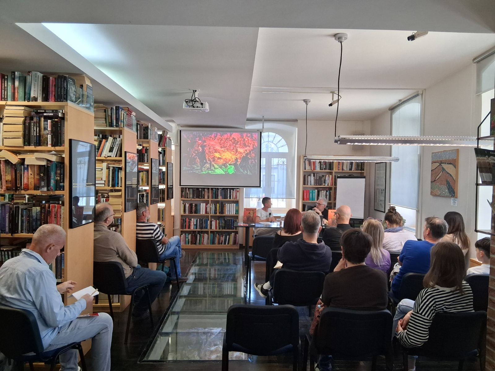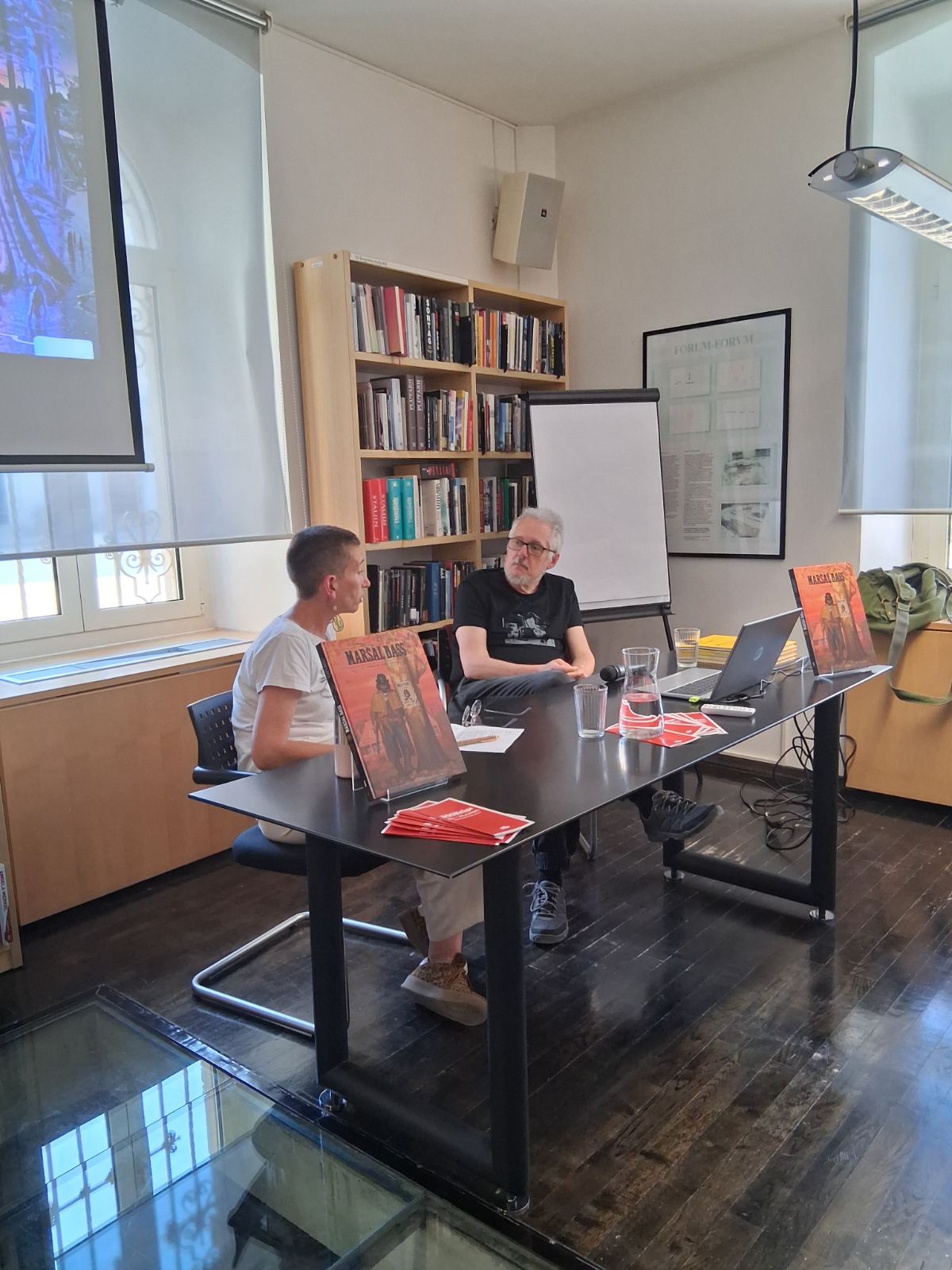 Istoga dana, jednako snažna atmosfera preselila se u svijet Divljeg zapada uz promociju šestog nastavka serijala „Maršal Bass: Proklete pare – Suton“. Razgovor o ovom surovom, ali fascinantnom vesternu vješto je vodila moderatorica Morin Kudić, dok je Macan, uvijek pun humora, anegdotama nasmijavao i zabavljao prisutne.