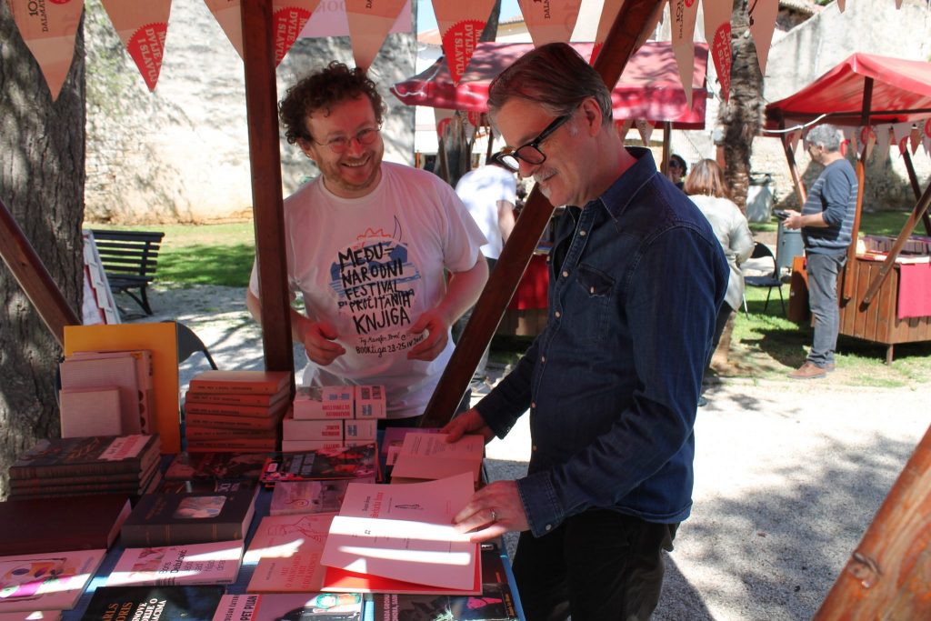 Večer drugoga dana Festivala rezervirana je za poeziju. U 19 sati u matičnom odjelu bit će predstavljena knjiga Zlatana Stipišića Gibonnija „Bandire potonulog carstva/Banderas de unimperio hundido“, u izdanju Dallas Recordsa. Na BOOKtigu dolazi Gibonni, pjesnik, noseći na dlanu stihove na papiru ukoričene u dvojezičnu zbirku pjesama. Zanimljivo je da je njegova zbirka najprije objavljena na španjolskom jeziku u portorikanskoj izdavačkoj kući Isla Negra na inicijativu književnika i sveučilišnog profesora Carlosa Roberta Gomeza, a potom je knjiga, na Gibonnijev poticaj, dobila i hrvatsko izdanje. Zbirka je prigrlila 31 pjesmu po Gibinom izboru, a podijeljene su u dvije cjeline – Kosti i Koža. Zavucite se u Gibonnijevu poeziju otvorenog srca. Jer bez glazbe, njegove stihove znači nanovo otkrivati. Razgovor s autorom vodit će književnik i prevoditelj Đorđe Matić.