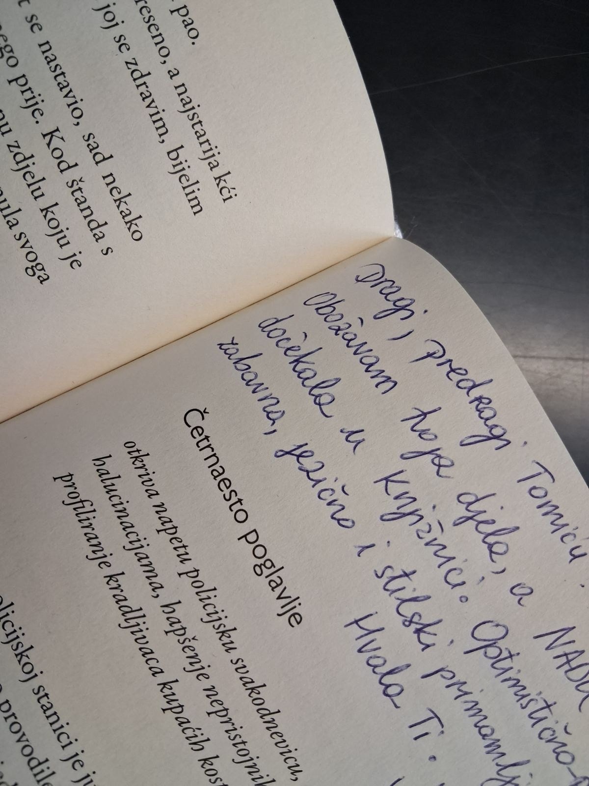 Književnu poslasticu za kraj 19. po redu BOOKtige donosi Ivica Prtenjača. U 19 sati bit će predstavljen njegov roman „Odeon“, nova intimna priča ispunjena pariškim ljepotama, ali i krizama Prtenjačinog junaka, pjesnika D.D., kojemu poezija znači sve, ali više ne uspijeva pisati. Moderatorica susreta je Valentina Špinderk, voditeljica čitateljskog kluba GK Poreč „BOOKlab“.