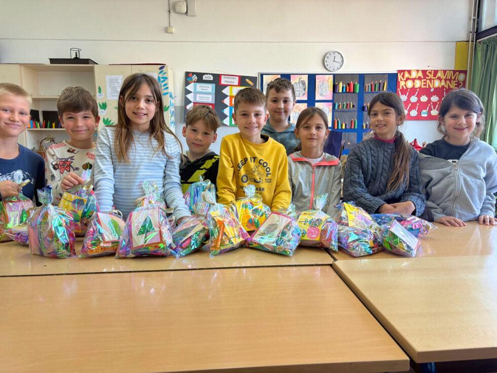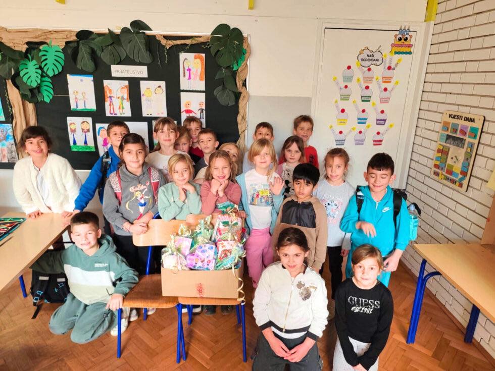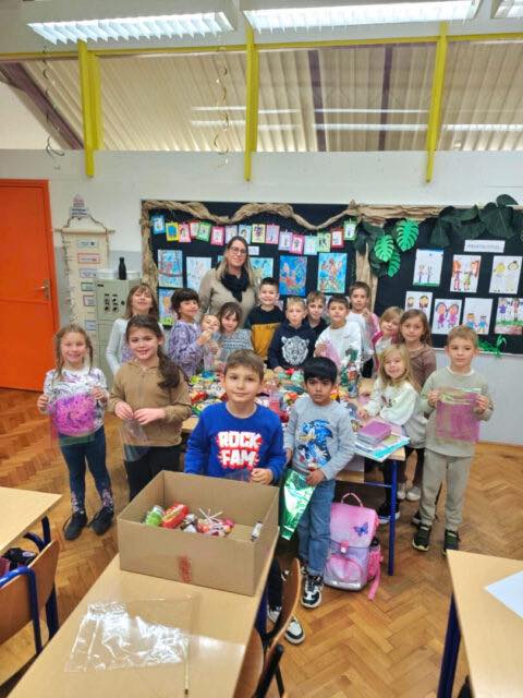 Učenici su zajedno s roditeljima prikupili slatkiše, a zatim su u razredu izradili vesele čestitke i napisali tople poruke kako bi svakom djetetu iz doma uljepšali blagdane i pokazali da netko misli na njih. Svi darovi pažljivo su zapakirani u male paketiće koje su učenici pripremili s puno pažnje, empatije i dječje radosti.
