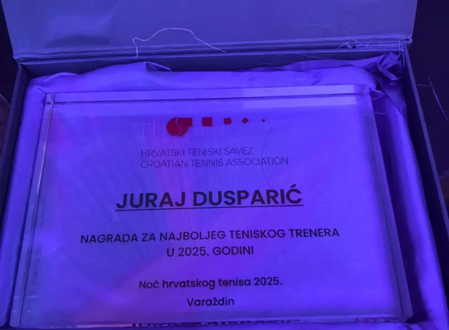 Na Noći hrvatskog tenisa u Varaždinu dodijeljena su priznanja najuspješnijima u hrvatskom tenisu za 2025. godinu, a među laureatima se našao i istaknuti porečki stručnjak Juraj Dusparić, trener Teniskog kluba Pro2000, koji je ponio titulu – trener godine.