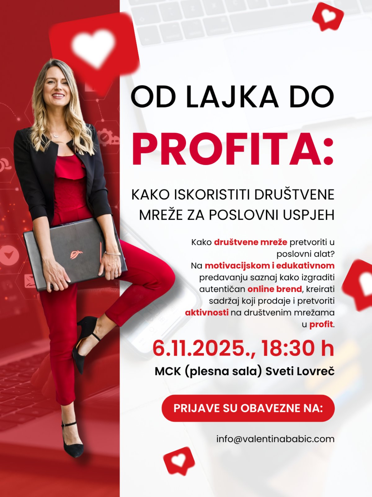 Od lajka do profita – KAKO ISKORISTITI DRUŠTVENE MREŽE ZA PRAVI POSLOVNI USPJEH besplatno predavanje u Sv. Lovreču