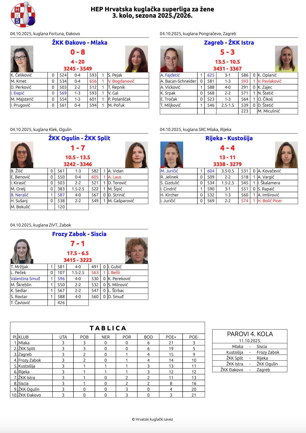 U 3. kolu HEP HKSL za žene porečke kuglačice gostovale su u Zagrebu gdje su protiv istoimene ekipe izgubile rezultatom 3:5 i 36 čunjeva manjka.