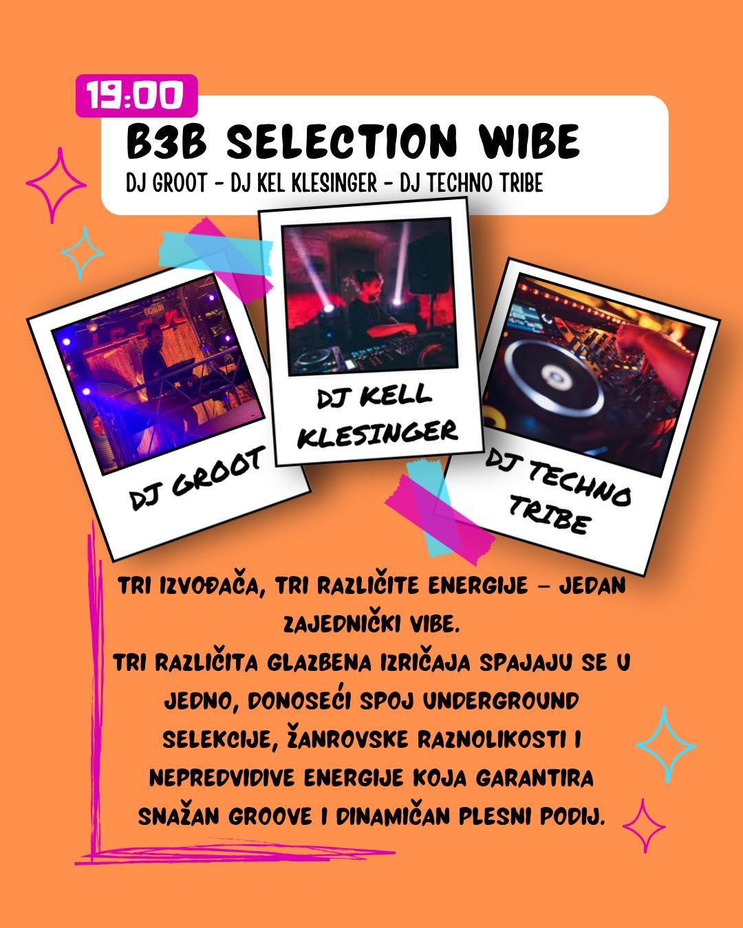 Kell Kelsinger donosi preciznu selekciju i underground senzibilitet, spajajući house podžanrove u dinamične setove koji prate puls publike. Techno Tribe briše granice između stilova, vodeći vas kroz emotivno i energično glazbeno putovanje koje spaja klasiku i suvremeni zvuk. DJ Groot unosi dozu nepredvidivosti, kombinirajući žanrove i formate u jedinstveno iskustvo koje pomiče granice plesnog podija.
