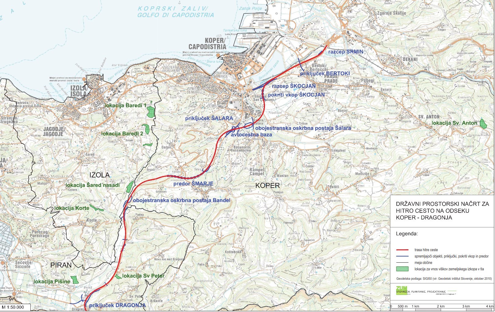 Inače, vizualizacija brze ceste od Kopra do grančnog prijelaza Kaštel objavljena je 2009. godine, a radovi su bili predviđeni u trajanju 3 godine. Tek 2016. godine Slovenija je objavila Državni lokaciji plan za brzu cestu Koper-Dragonja i nako toga je tajac.