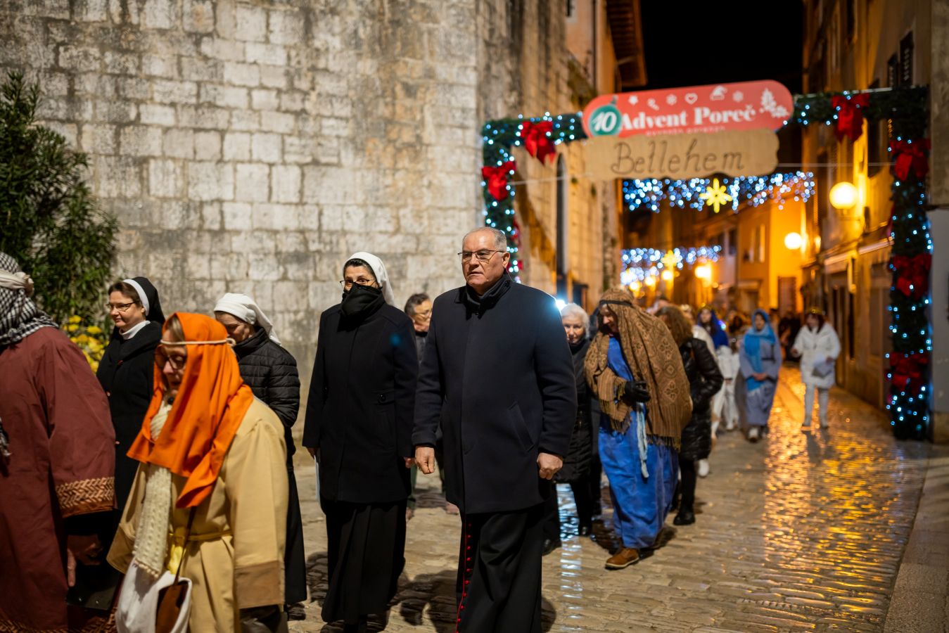 Šetnjom od Trga slobode do Trga Matije Gupca, na kojem se održava Advent Poreč, i posjetom Sveta tri kralja štalici smještenoj u paviljonu u parku, završilo je uprizorenje živih jaslica u svečanoj i posebnoj atmosferi zajedništva. U ovogodišnjem događaju sudjelovao je najveći broj volontera, a uprizorenje je pratio i porečko-pulski biskup mons. Ivan Štironja predstavnici Župe Poreč i Porečko-pulske biskupije te predstavnici Grada Poreča.