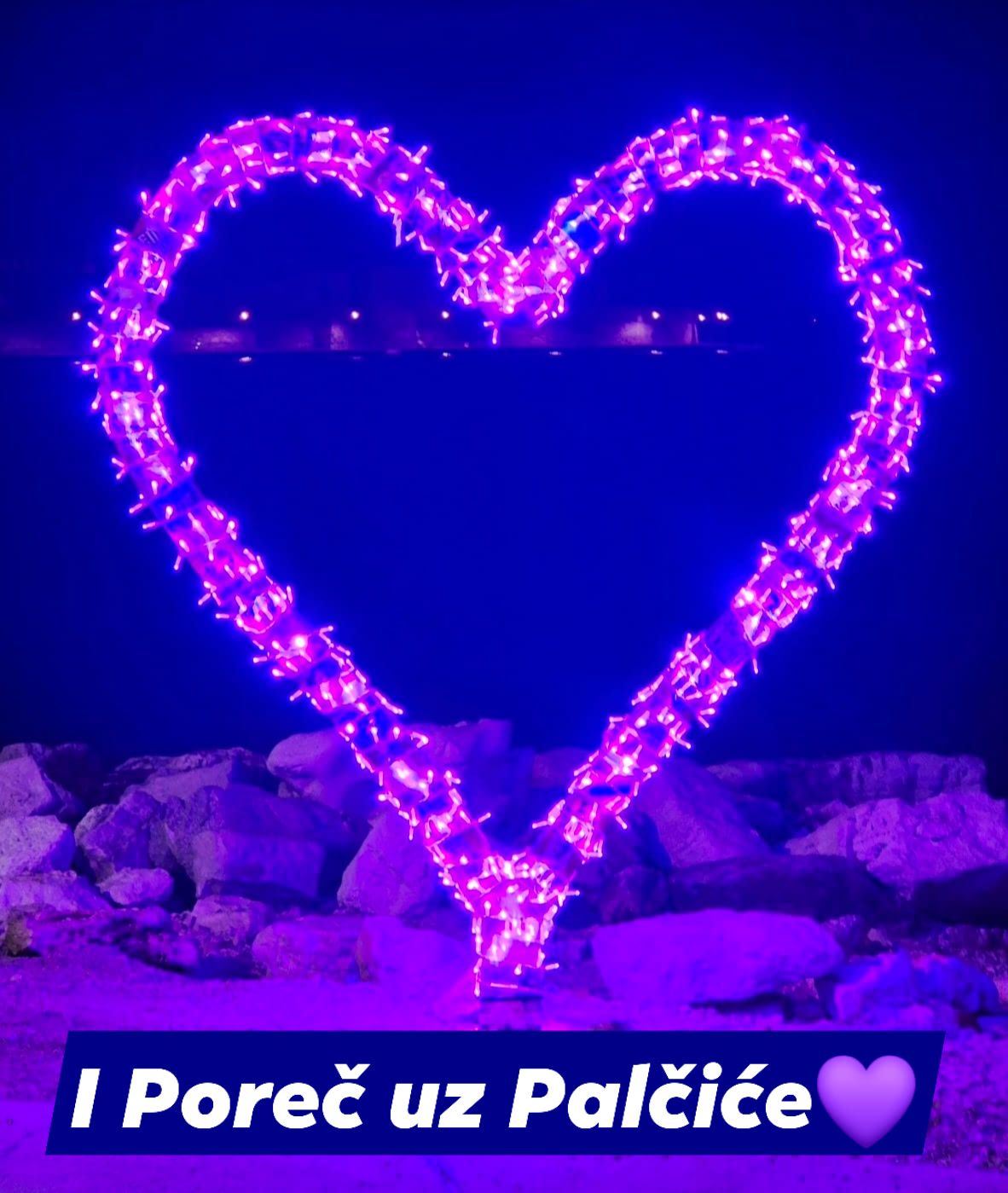 Popularni porečki photo point, Srce u uvali Peškera 17. studenog prigodno je ukrašen i osvijetljen u ljubičastu boju, u znak obilježavanja Svjetskog dana prijevremeno rođene djece.