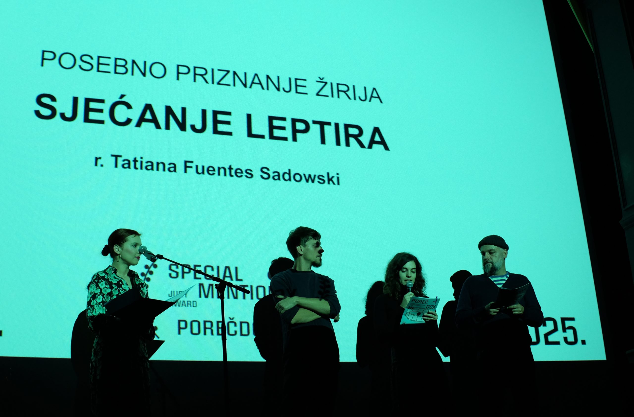 Posebno priznanje žirija dobio je film Sjećanje leptira peruanske redateljice Tatiane Fuentes Sadowsky. Žiri je izdvojio njegov poetski i introspektivan pristup osobnoj i kolektivnoj memoriji, ističući kako film na vizualno dojmljiv način spaja autobiografske elemente i refleksiju o nasljeđu kolonijalnog nasilja. Redateljica, kao i Ramljak, pokazala je koliko filmski jezik može biti moćan alat u propitivanju ukorijenjenih narativa.