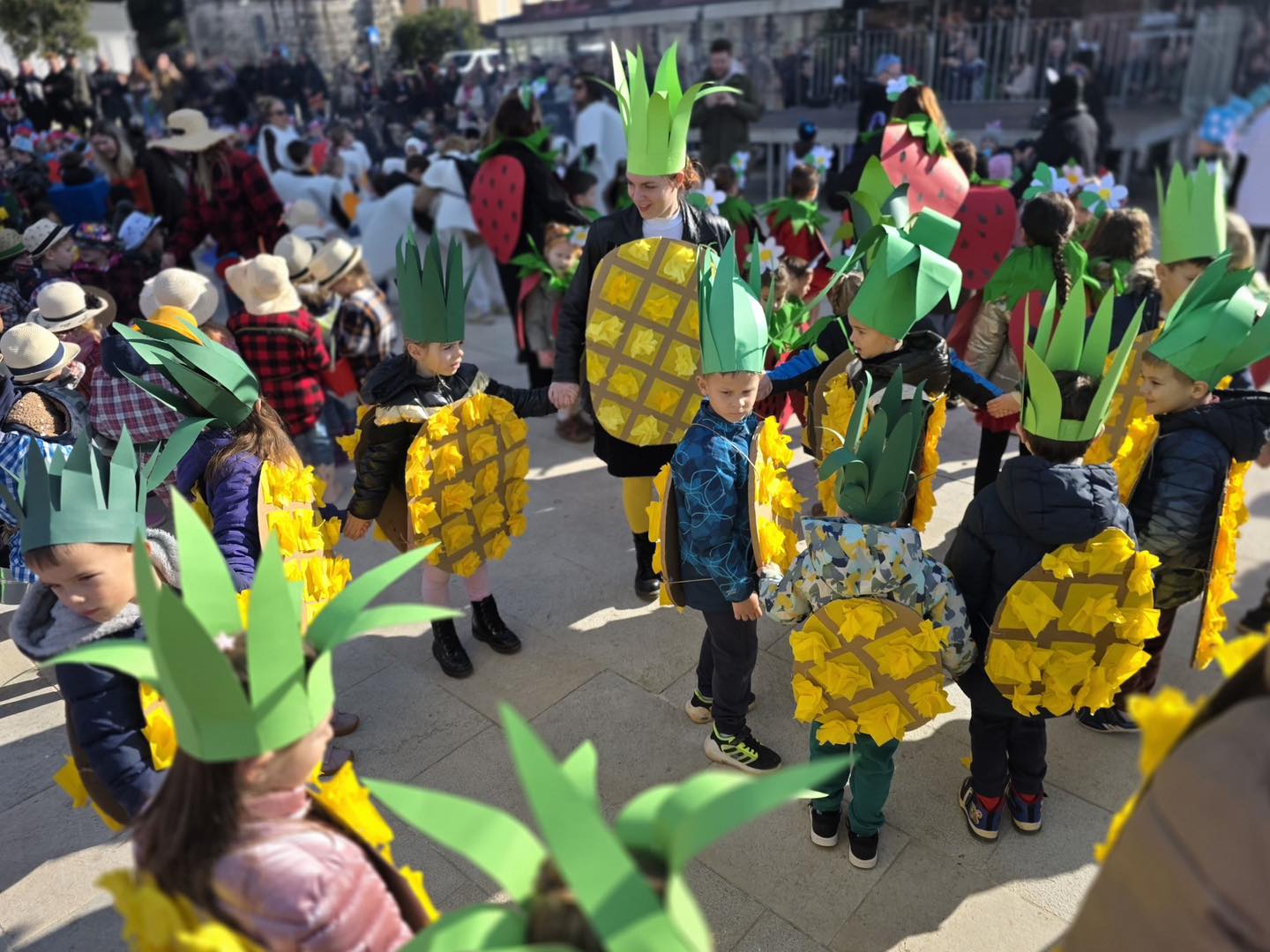 Dječji karneval, u organizaciji Grada Poreča-Parenzo, započeo je u 10 sati okupljanjem maškarica na gradskoj rivi, gdje je potom uslijedila prava maškarana fešta uz glazbu, ples i animaciju. U ovogodišnjem izdanju sudjelovale su skupine iz svih porečkih dječjih vrtića – Radost, Paperino, Poreč-Parenzo, Crvenkapica i 101 Dalmatinac. Mališani su se predstavili raznolikim i maštovitim maskama koje su oduševile okupljene. Na rivi su tako prošetali ananasi, grožđe, lubenice i jagode, Pipi Duge Čarape, mali djelatnici Usluge Poreč, meduzice, nonići, dalmatineri, lego-kockice i karte za briškulu, vrtlari, pužići…