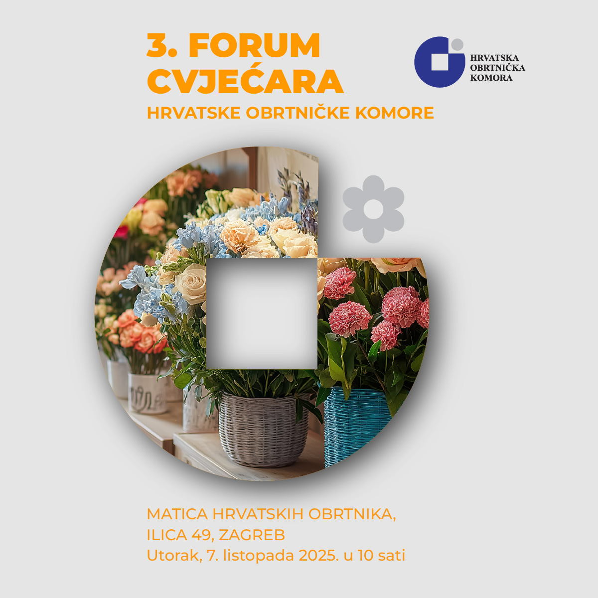 Hrvatska obrtnička komora sljedećega tjedna u Matici hrvatskih obrtnika okuplja obrtnike cvjećare na 3. Forumu cvjećara, pri čemu će tema okupljanja biti aktualna situacija u cvjećarskoj struci, s naglaskom na svakodnevne probleme koji utječu na poslovanje hrvatskih cvjećara. Uz panel raspravu, održat će se i edukacija na temu Fiskalizacija 2.0. prilagođena cvjećarima aranžerima.