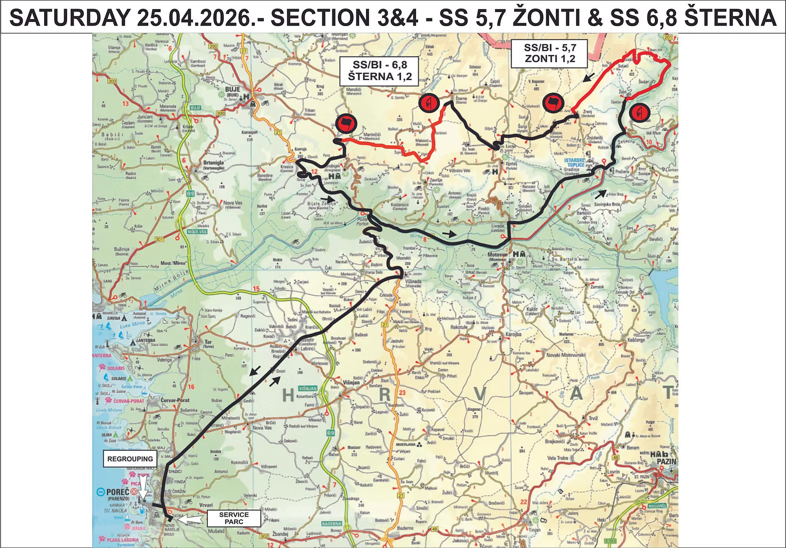 Zbog održavanja 27. Rallyja Poreč u danima od 24. do 27. travnja povremeno će biti zatvorene dionice prometnica u Istarskoj županiji prema sljedećem rasporedu:
