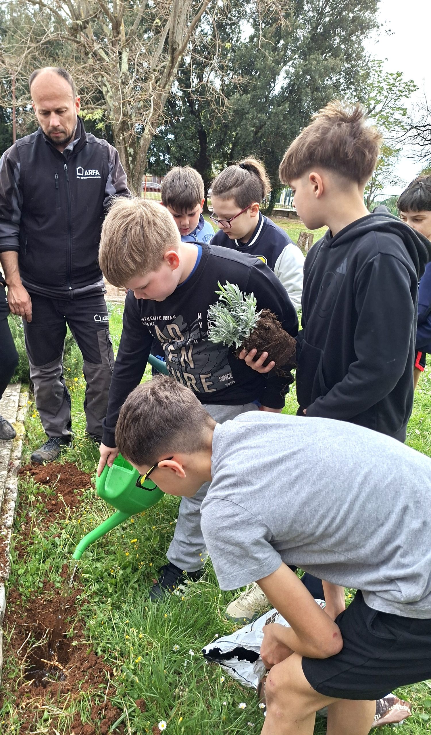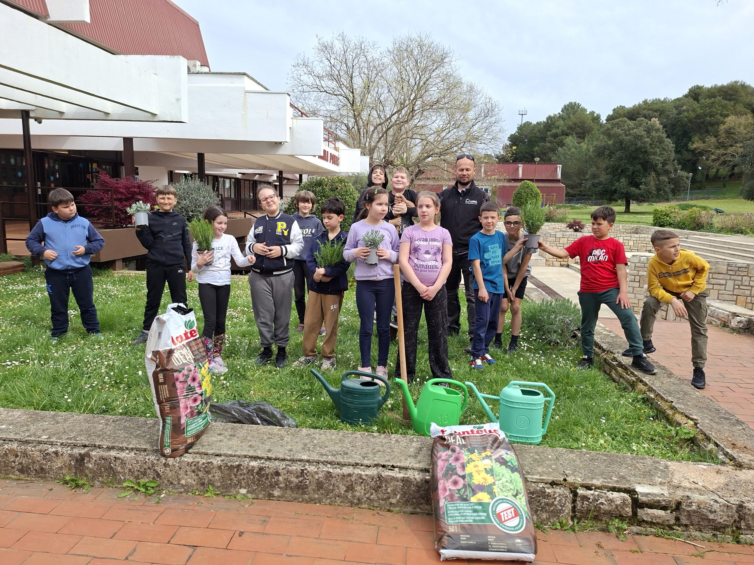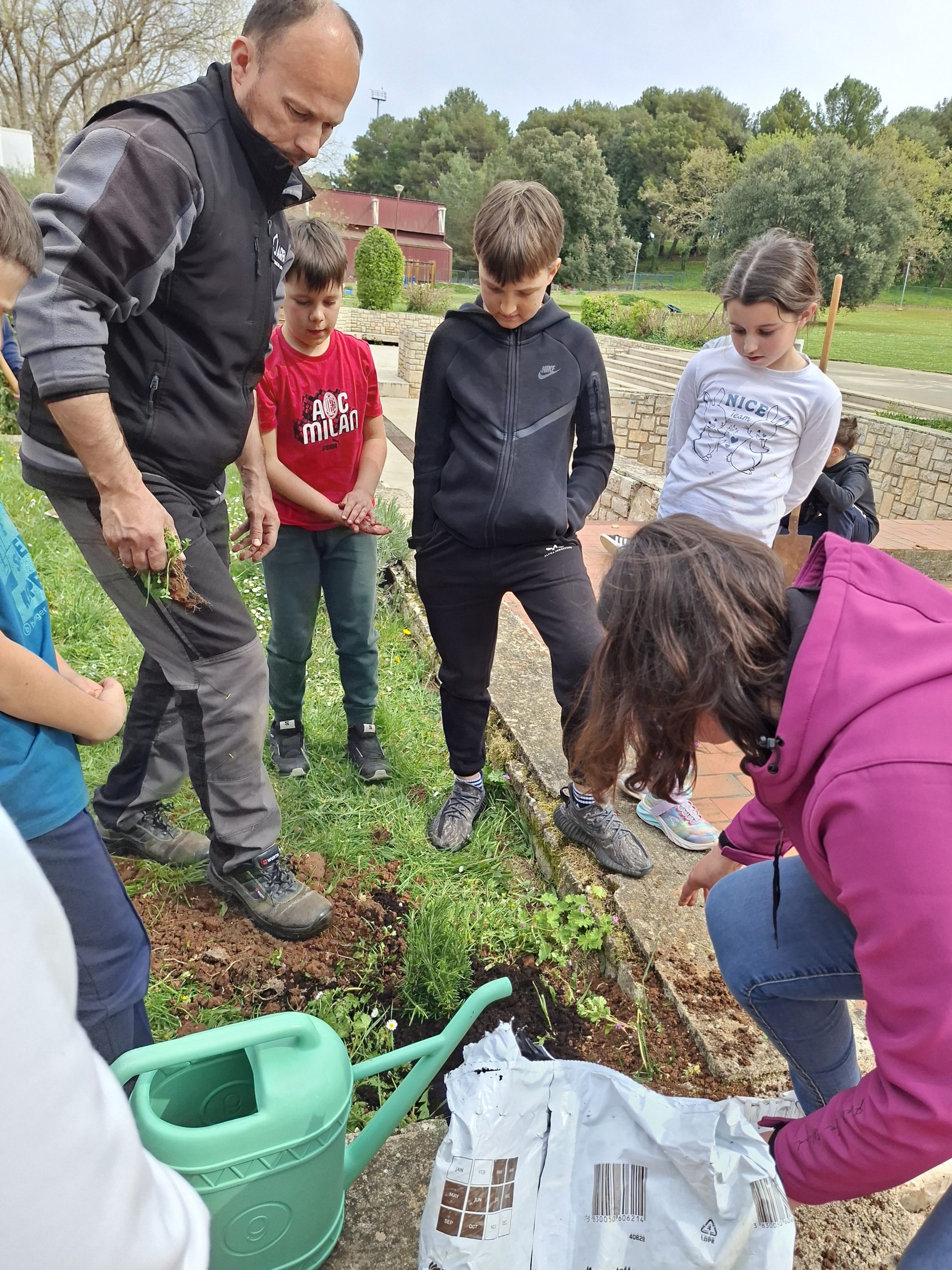 Učenici su uz pomoć Neovog tate, roditelja Gorana i Rinove mame, roditeljice Tanje posadili ružmarin i lavandu. Tako su naučili pravilan postupak sadnje biljaka.
