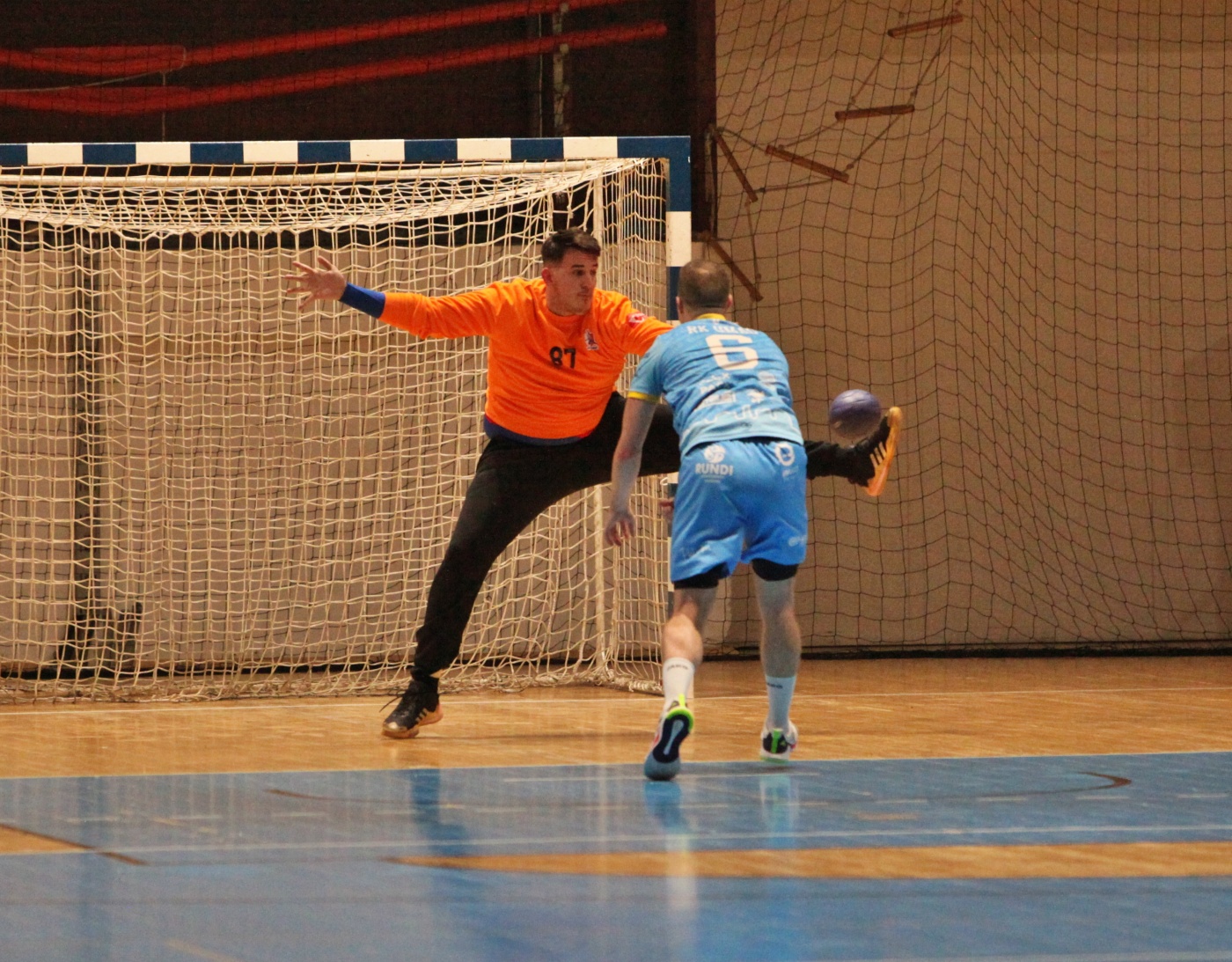 U tim trenucima susret je dobio dodatnu dozu naboja kakvu i nosi svaki istarski derbi. Posljednje minute prvog dijela bile su zanimljive, ali i pune grešaka, od ishitrenih šuteva i izgubljenih lopti do nekoliko dobrih obrana. Takav rasplet najbolje je iskoristila gostujuća momčad koja je u samoj završnici preko Bartola Mikuljana i Buvinića prvi put na susretu došla do vodstva. Umag je tako najprije poveo 13:12, a na odmor otišao s dva gola prednosti (14:12).