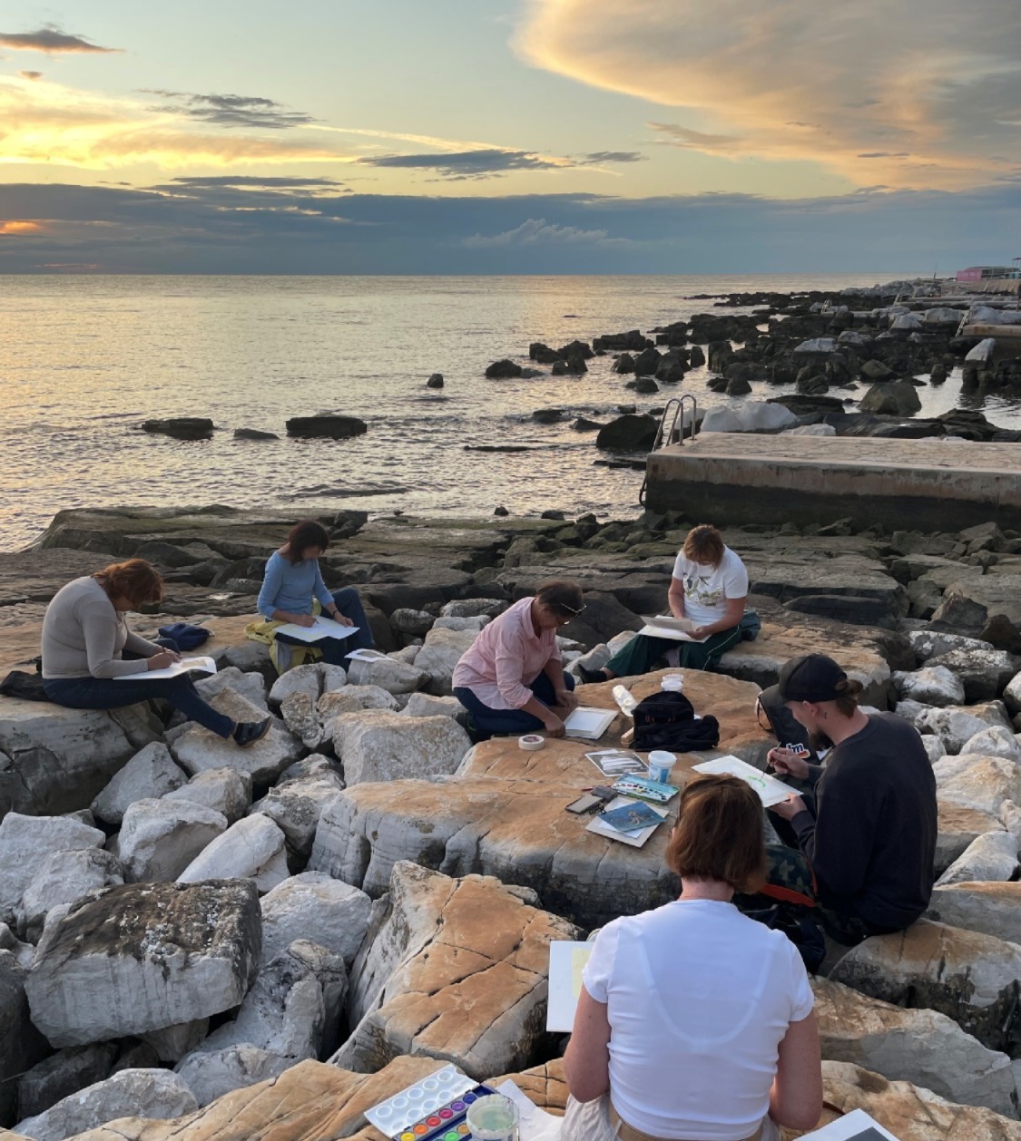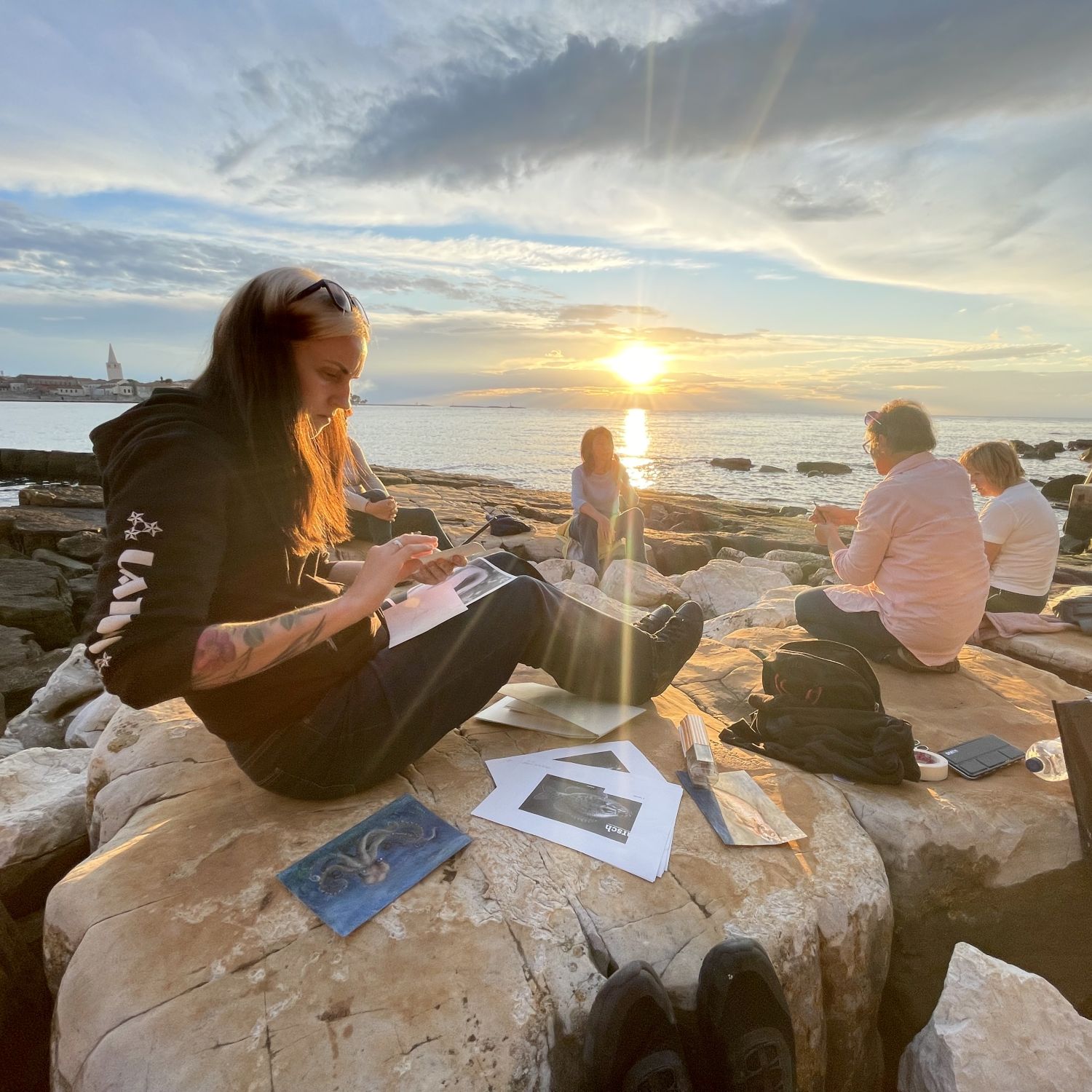 Vlasnica ateliera, umjetnica Snježana Vidović, ovaj je put svojim gostima ponudila tečaj slikanja akvarelom u Poreču. U subotu, 27. rujna, zainteresirani gosti mogli su istražiti svoju kreativnost akvarelima pod nadzorom iskusne umjetnice. Tijekom dvosatnog tečaja, nakon kratkog upoznavanja s poviješću ove tehnike slikanja, polaznici su se uronili u svijet slikanja akvarelom i doživjeli njegovu lakoću i žive boje.