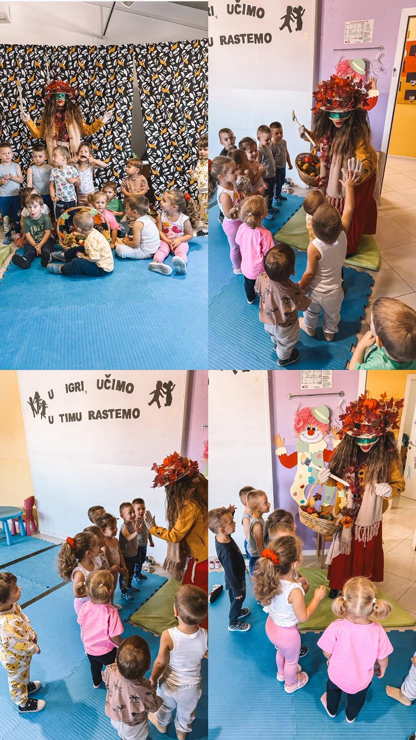 Uz pjesmice i recitacije o jesenskim plodovima i šarenim bojama prirode, dječji glasovi ispunili su šumu posebnom radošću. Teta Jesenka nije ostala dužna – zahvalila se djeci punom košarom mirisnih mandarina i raznolikih jesenskih plodova, unoseći u njihov svijet pravu čaroliju jeseni.