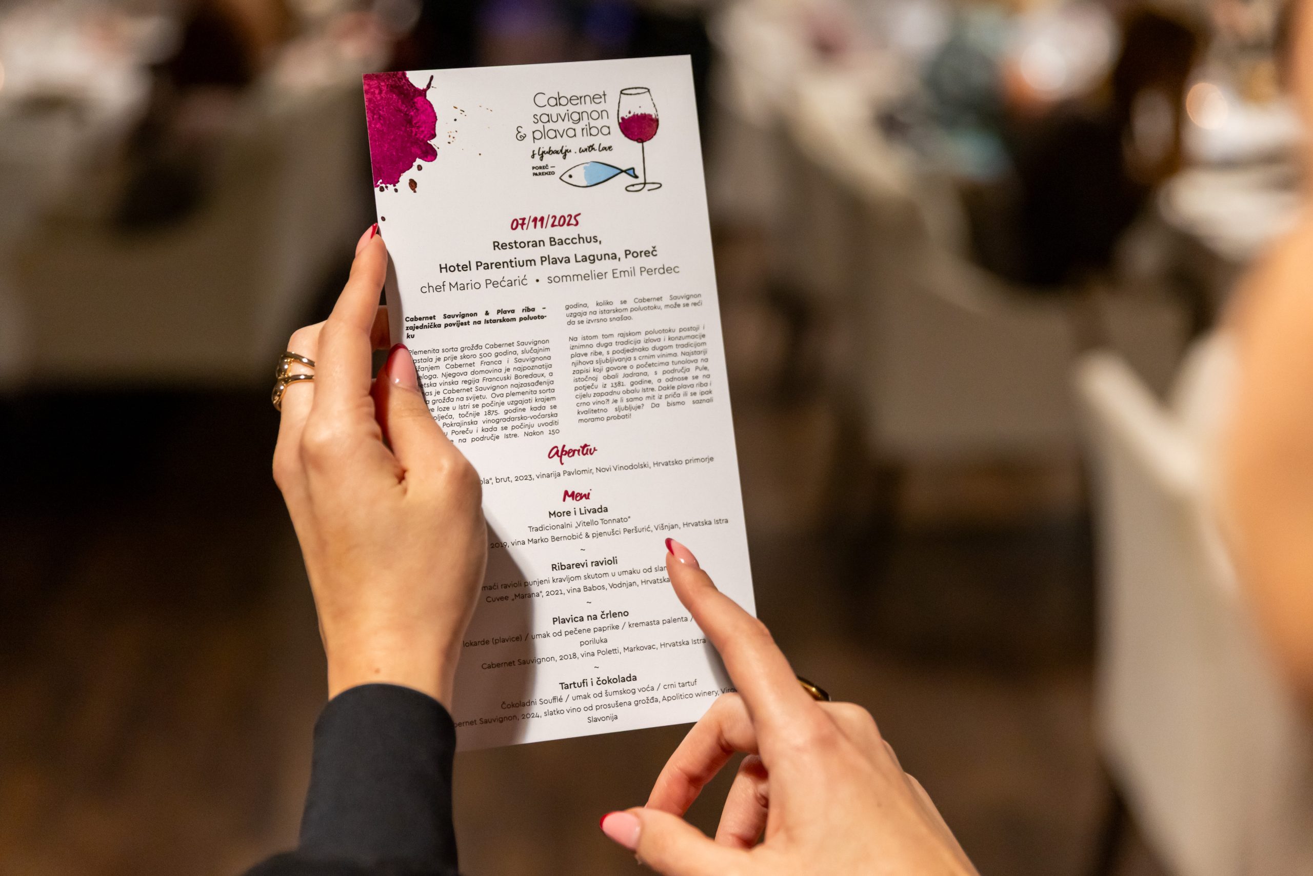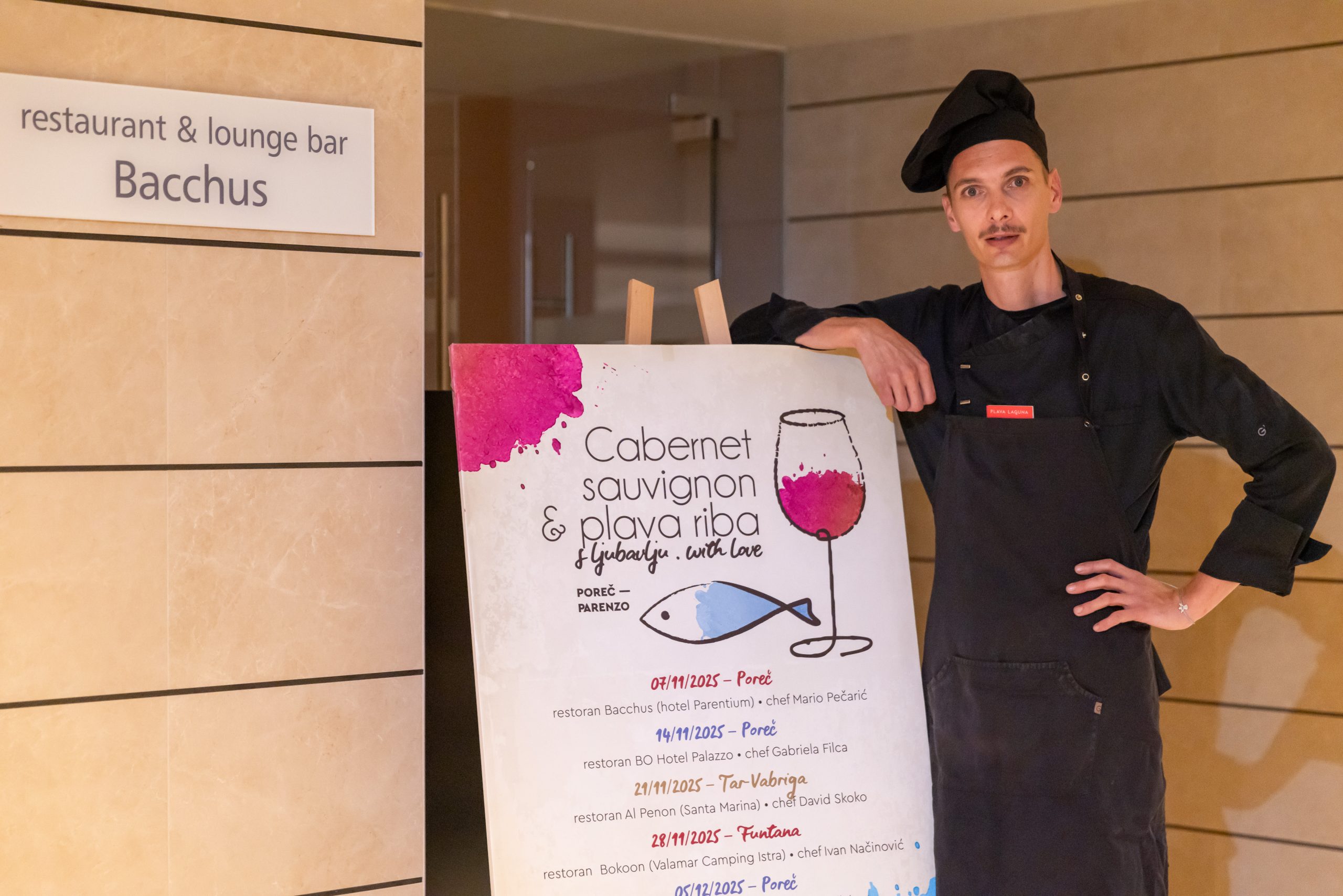 Prva od pet večeri u sklopu trećeg izdanja eno-gastronomske manifestacije Cabernet Sauvignon & plava riba, s ljubavlju održana je u petak, 7. studenog, u restoranu Bacchus Hotela Parentium u Poreču. Događaj je privukao veliki broj ljubitelja dobre hrane i vina, a stolice su se brzo popunile, potvrđujući da je manifestacija već postala događaj koji se ne propušta na porečkoj eno-gastronomskoj sceni. Manifestacija je, kao i prethodnih godina, spojila vrhunske chefove i sommeliere koji će gostima predstaviti savršen spoj Cabernet Sauvignona i plave ribe.