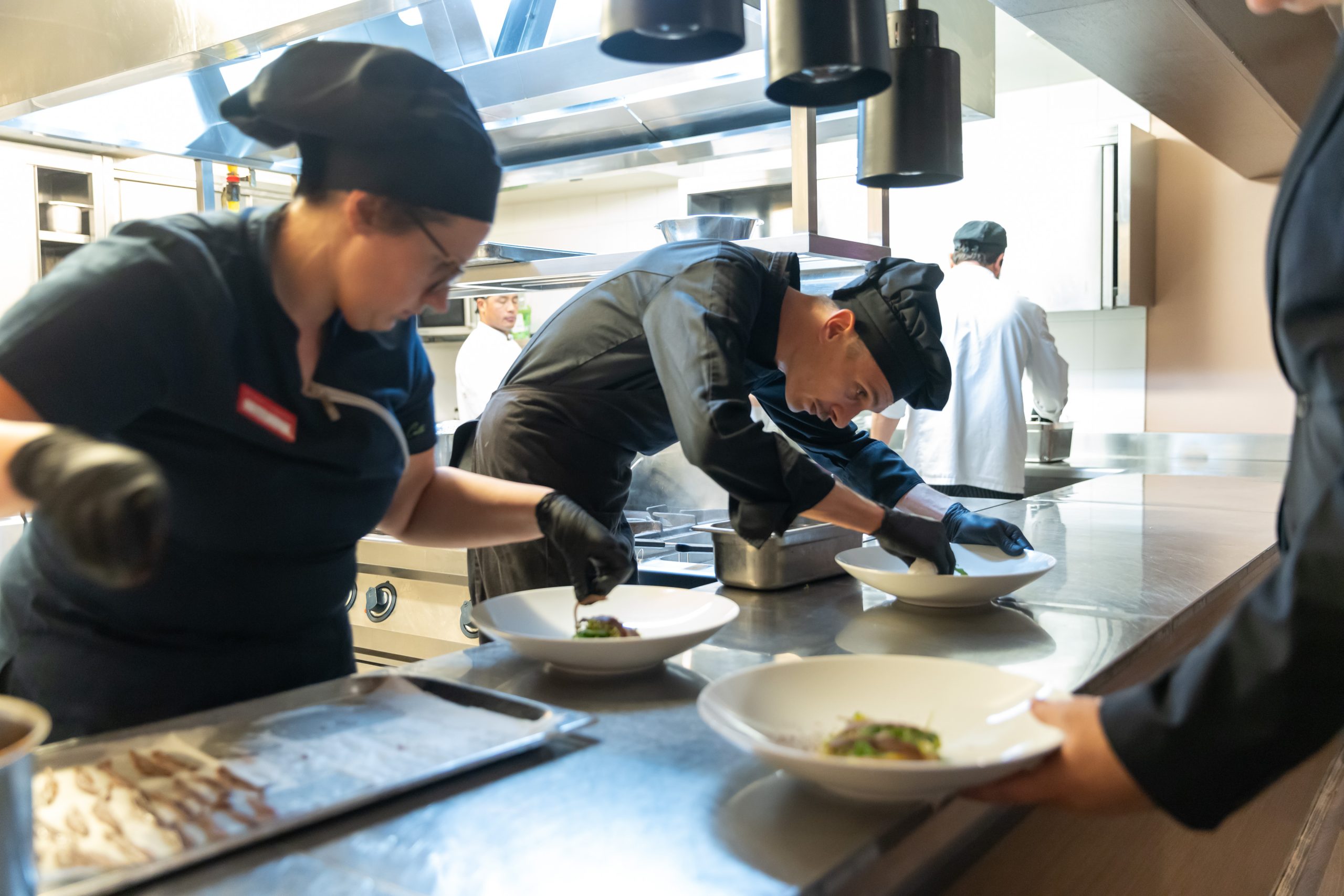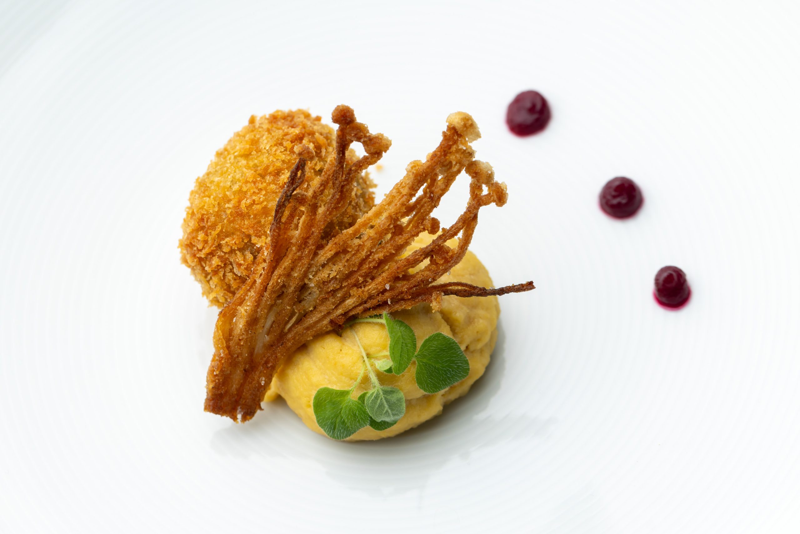 Večera je započela osvježavajućim aperitivom – pjenušcem „Ružica Vinodola“ brut iz 2023. godine vinarije Pavlomir iz Hrvatskog primorja. Nakon toga, gosti su uživali u prvom slijedu naziva More i Livada, chefovoj interpretaciji tradicionalnog jela Vitello Tonnato, savršeno sljubljenoj s pjenušcem „Vrille“ extra dry iz 2019., kojeg potpisuju vina Marko Bernobić i pjenušci Peršurić.