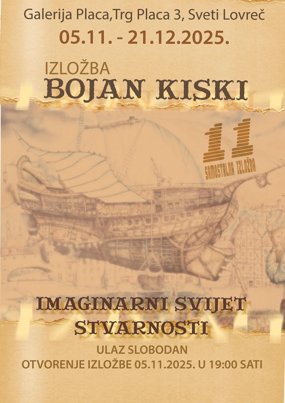 Otvaranje ove izuzetno zanimljive izložbe Bojana Kiskija, umjetnika vrlo specifičnog stila slikanja, održat će se u galeriji “Placa” u srijedu, 5.11.2025. s početkom u 19 sati.