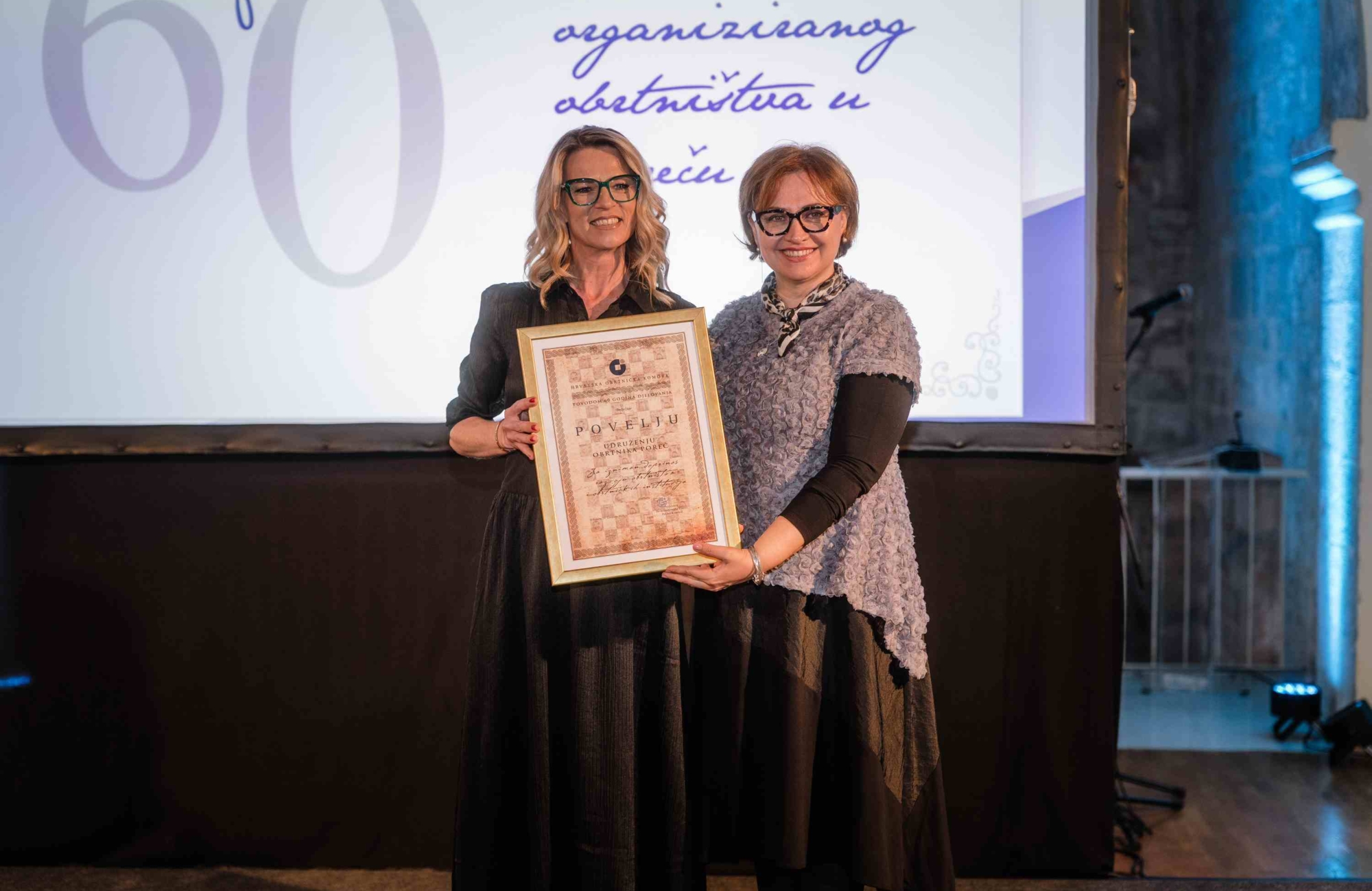 Glavna tajnica Hrvatske obrtničke komore, Violeta Jelić uručila je predsjednici Klarić Povelju za izniman doprinos razvoja obrtništva i obrtničkih institucija koju dodjeljuje Hrvatska obrtnička komora.