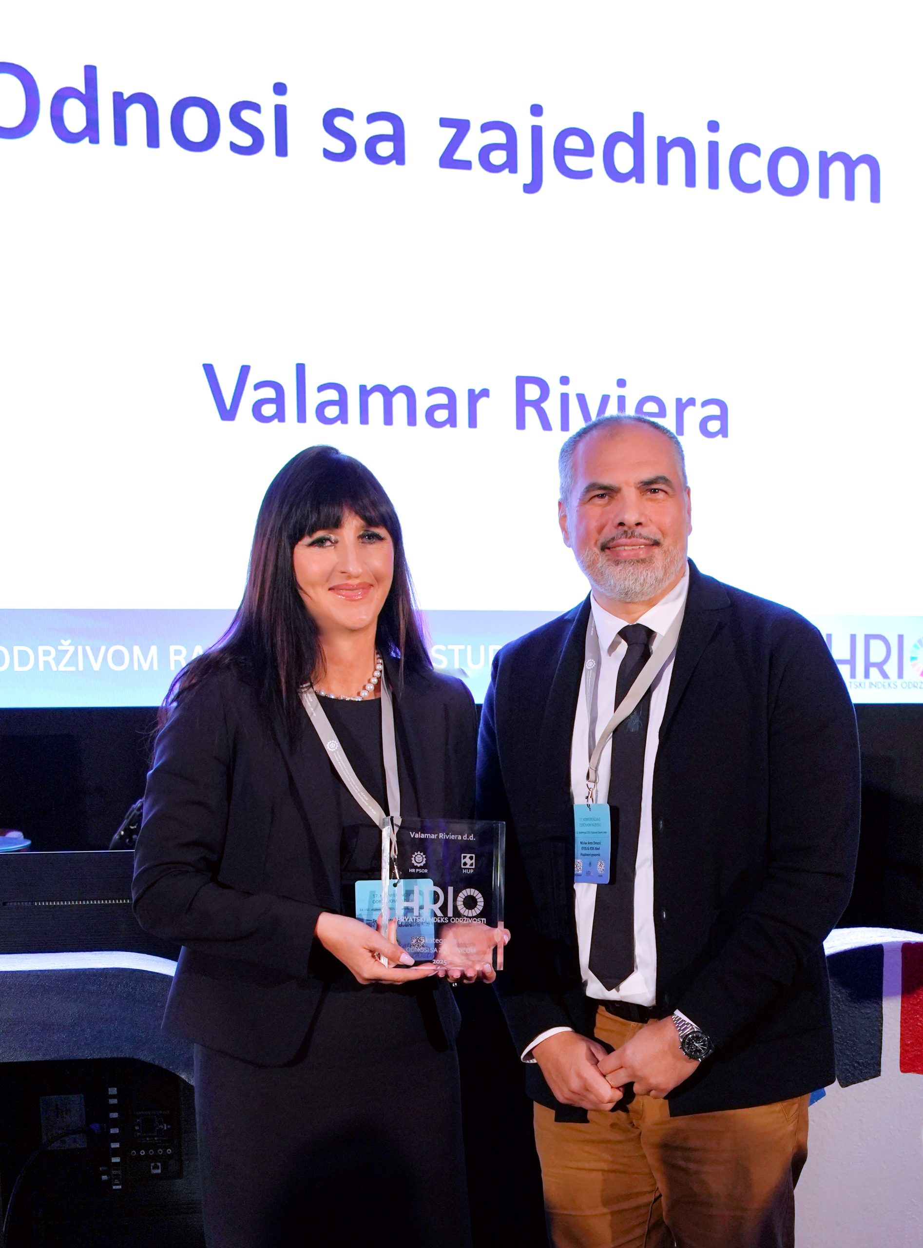 Valamar je dobitnik nagrade Hrvatskog indeksa održivosti (HRIO) u kategoriji Odnosi sa zajednicom, koja prepoznaje izvrsnost kompanija u integriranju društvene odgovornosti u poslovne procese i doprinos razvoju lokalnih zajednica. Ova prestižna nagrada potvrđuje dugogodišnji doprinos Valamara razvoju održivog turizma.
