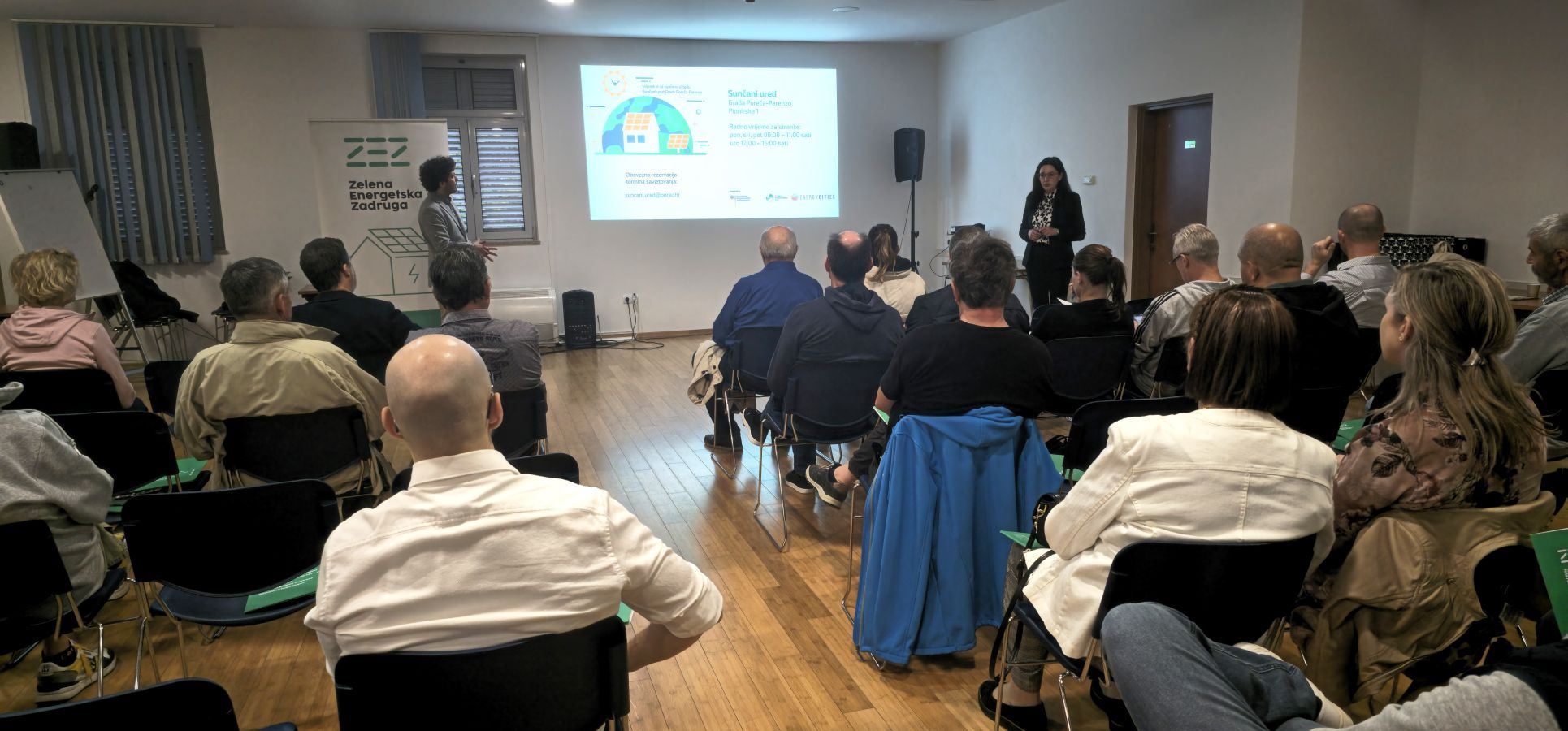 Besplatna informativna radionica ”Zašto je baš sada pravi trenutak za vlastitu solarnu elektranu?”, koju su sinoć (30. rujna 2025.) godine organizirali Grad Poreč-Parenzo i Sunčani ured Grada Poreča-Parenzo, u suradnji sa Zelenom energetskom zadrugom (ZEZ) i ovaj je put ispunila zainteresiranom publikom dvoranu Obrtničkog doma. Građani iz Poreča, ali i ostalih gradova Istre, pokazali su veliki interes za predavanje o novostima u području postavljanja solarnih elektrana na obiteljskim kućama.