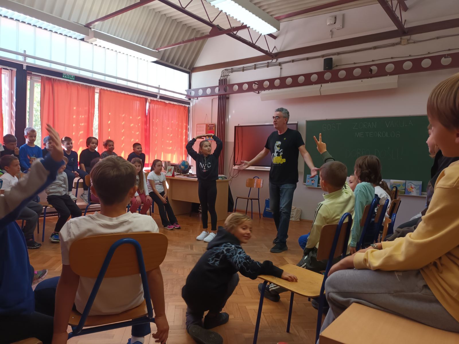Snijegu se ponekad veselimo, a ponekad baš i ne. Barem odrasli. Ali, zato ga djeca vole. A što je to ustvari snijeg i kako on nastaje? Kako nastaju pahuljice? Je li snijeg dobar ili loš za biljke? Može li snijeg biti ružičaste boje? Vidimo li svi istu dugu?… Na sva ta vremenasta pitanja, i mnoga druga, učenici 2. a, b i c razreda Osnovne škole Poreč te učenici Područne škole Žbandaj dobili su odgovore u petak, 7. studenog, u razgovoru s meteorologom Zoranom Vakulom, dragim gostom Gradske knjižnice Poreč u Mjesecu hrvatske knjige.