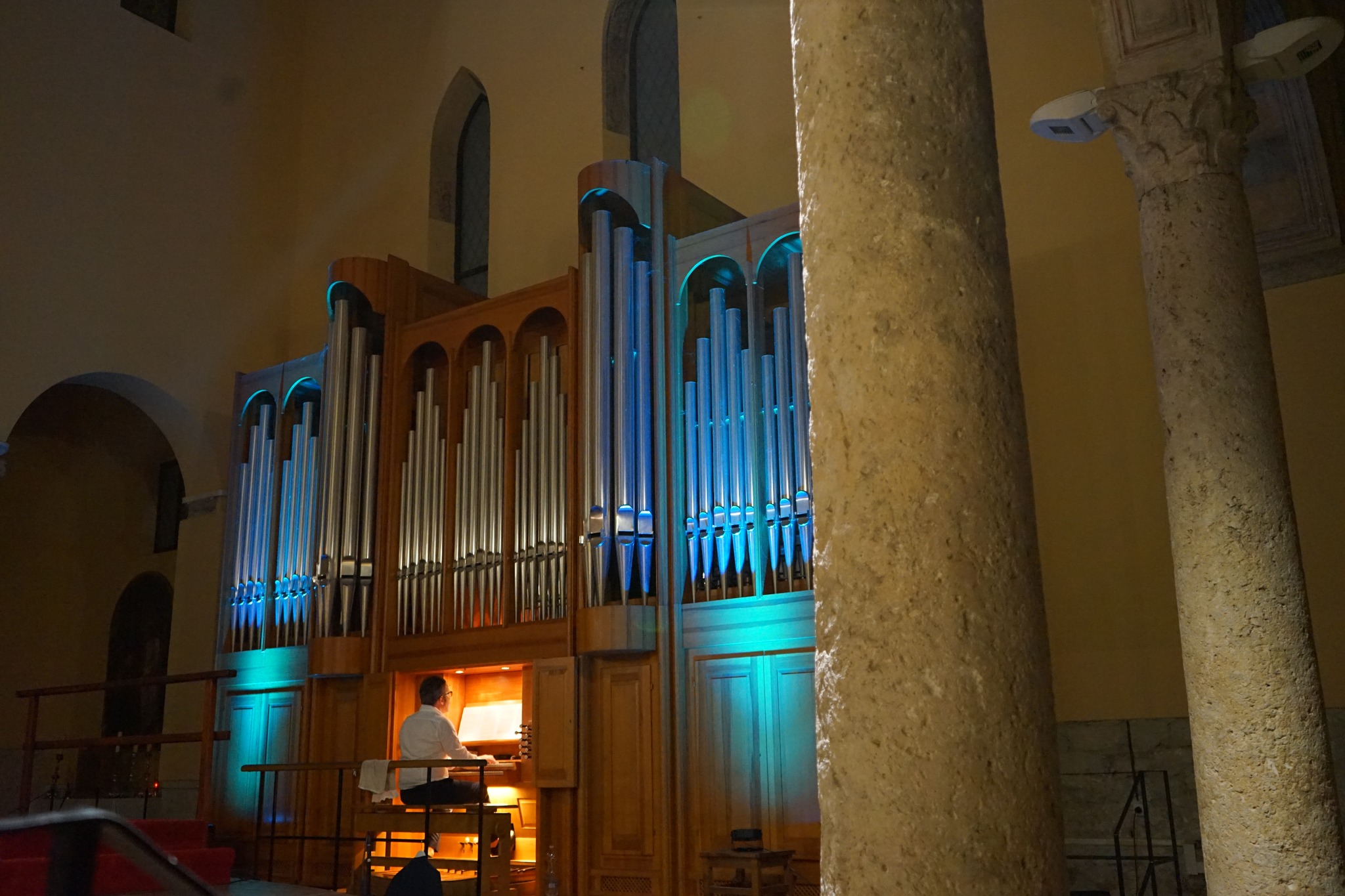 Za ovakav poseban događaj odabrani su umjetnici koje možemo s punim pouzdanjem svrstati u sam vrh europske glazbene scene, a to su proslavljena sopranistica Gudrun Sidonie Otto i Andreas Liebig, orguljaš katedrale u Baselu. Mnogobrojna publika, među kojom i brojni rovinježi koji s ponosom opet čuju svoje nikad prežaljene orgulje, s oduševljenjem je popratila raznolik program kroz kojeg su glazbenici dotakli razne kuteve Europe, od Švedske do Rusije. Koncertu je nazočio i zamjenik veleposlanika Švicarske Ambasade u Zagrebu, gospodin Thomas Casura, koji se na početku obratio prigodnim pozdravom. Ovim koncertom je ovaj izvanredan duo potvrdio svoj status eminentnih i legendarnih glazbenika vrijednih divljenja. Sopranistica Otto pokazala je kako pjevači koje danas nazivamo ”opernim pjevačima” (pomalo nespretan naziv zato što se njime obuhvaćaju svi akademski obrazovani pjevači, bez obzira na specijalizaciju i činjenicu da možda uopće ne pjevaju operu) itekako mogu baratati bazičnim kompetencijama koje često izostaju: perfektna intonacija, kontrolirni vibrato i razumljiv tekst. Osim perfektnog baratanja vlastitim instrumentom i tehničke preciznosti, pokazala je izuzetnu gipkost i navigaciju kroz razne stilove – od tradicionalnih napjeva (Kaddish, tradicionalna židovska pjevana molitva) i gregorijanskog korala (Magnificat), preko različite talijanske (Monteverdi – Laudate Dominum) i njemačke (Buxtehude – Klag-Lied) barokne estetike, do nevjerojatnog legata u djelima kasnijih stilova (Mozart – Laudamus Te, Saint-Saëns: Ave Maria…), pa čak i suvremenih kompozicija (Gubaidulina – Aus den Visionen der H. Hildegard von Bingen). Izostanak orkestralne pratnje nadoknadio je izvanredan Andreas Liebig koji je, poklonivši punu pozornost detaljnom i kreativnom pronalaženju raznih registarskih kombinacija, iz ovog instrumenta izvukao puni potencijal i još jednom potvrdio zašto orgulje nazivaju ”kraljicom instrumenata”. Liebigovo iskustvo i znanje posebno su došli do izražaja u solističkim komadima za orgulje, skladatelji 17. i 18. stoljeća, razdoblja kada su orgulje doživjele svoj prvi veliki vrhunac, naročito kroz djela velikog Johanna Sebastiana Bacha. Interpretacije djela Frescobaldija, Weckmanna, Buxtehudea, Pescettija i ostalih bile su vrlo različite, uz poštivanje stilskih odrednica svakog kompozitora, ali i uz svoj istančani osobni pečat. Publika je ispratila glazbenike stajaćim ovacijama i dugotrajnim pljeskom, a glazbenici su se zahvalili jednim posebnim tradicionalnim napjevom u izvedbi sopranistice.