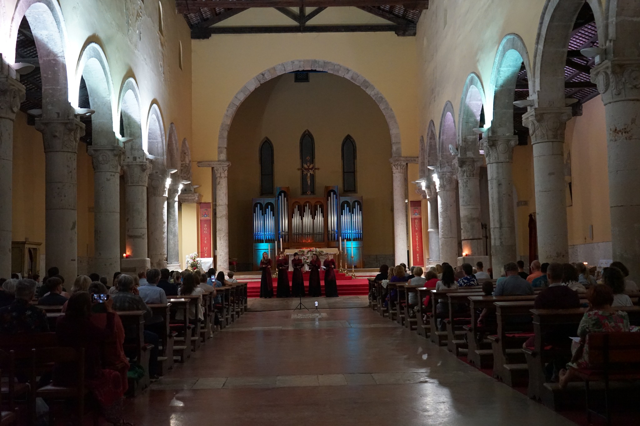 Druga polovica rujna posvećena je najljepšoj simbiozi instrumenata koja je stoljećima pratila svakodnevne i najsvečanije događaje unutar sakralnih prostora i samostana – orgulje i ljudski glas, s posebnim naglaskom na ženske glasove. Iako je danas nekakav generalni pogled na neka prijašnja razdoblja, posebice srednji vijek, izrazito mračan i negativan, odnosno stereotipno razmišljanje je da žene nisu imale ”glas”, kroz koncerte 19. i 20. rujna u pulskoj Katedrali i velebnoj bujskoj župnoj crkvi Sv. Servula dokazano je upravo suprotno. Slabo je poznato u glazbenom svijetu koliko je zapravo velika i bogata glazbena riznica proizašla iz pera upravo žena skladateljica, onih čije ime danas znamo i onih koje su nažalost ostale anonimne. Zapravo prvi potpisani europski skladatelj bila je upravo Hildegard von Bingen (12.st), njemačka redovnica i skladateljica čija izuzetno virtuozna glazba velikih tonskih opsega i dan danas plijeni pozornost. Sve čari i bogatstvo srednjovjekovne i renesansne glazbe potekle iz ženskih samostana danas ponovno oživljava renomirani ženski vokalni ansambl Graces&Voices. Ovih pet izvanrednih glazbenica, osim što se bave izvođenjem zaboravljenih napjeva, bave se i istraživačkim radom, odnosno istraživanjem prašnjavih, zaboravljenih manuskripata i transkripcijom nota. Osim toga, svojim radom inspiriraju i brojne suvremene skladatelje koji redovito pišu upravo za ovaj ansambl, a neke od ovih djela predstavile su na svojim prvim koncertima u Istri, spojivši nespojivo – jednoglasni gregorijanski koral i modernu polifoniju. Oba koncerta bila su prožeta mistikom, nevjerojatnim jedinstvom i bojom pet glasova savršeno stopljenih u jedno, a posebnu pozornost su plijenile igre akustikom, odnosno kretanje pjevačica kroz crkveni prostor i otkrivanje novih dimenzija vlastitog sluha. Dinamiku u sam koncert unio je izvrsni orguljaš Nicola Cittadin, jedan od najznačajnijih stručnjaka za povijesne orgulje regije Veneto. Svojim profinjenim odabirom programa (za svaki koncert drugačiji s obzirom na različite karakteristike orgulja pulske Katedrale i bujske župne crkve), nenametljivo je pratio pjevanje djevojaka, uz solistički nastup orgulja u nekoliko brojeva. Uz nezaobilazne ”hitove” talijanskog settecenta (Vivaldi, Pasquini…), predstavio je i velikana talijanskog romantizma za orgulje – Marca Enrica Bossija, koji je ove godine u posebnom fokusu orguljaške scene zbog 100. obljetnice njegove smrti. Osim toga, vlastitim improvizacijama i modernim skladbama u duhu minimalizma savršeno se uklopio s pjevačicama, poput pravog alternatima.