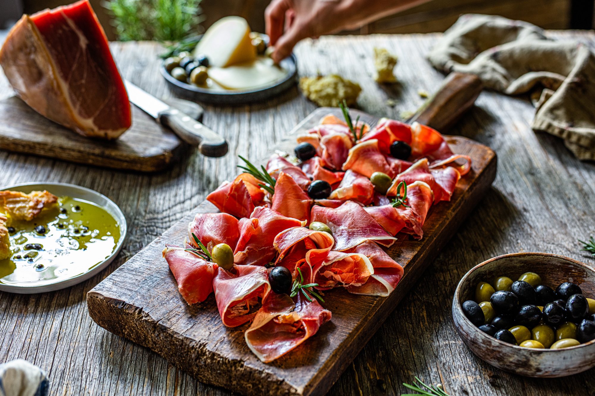 Meni 1: Tinjanski pijat – pršut, kobasice, salamin, sir i skuta uz domaći kruh i ulje | Teleća koljenica u demi glace umaku, kuhani kiselu kupus, pire krumpir, batat, zimska salata od kupusa i radića | Domaći štrudel od jabuke uz dec Muškata iz vlastitog podruma – 33€